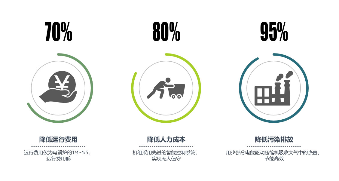 在嚴寒和寒冷地區(qū)作為集中供暖的補充方式,主要應用在項目偏僻,無法接入城市熱網(wǎng)、氣網(wǎng),但在冬季任然需要供暖的中小型項目